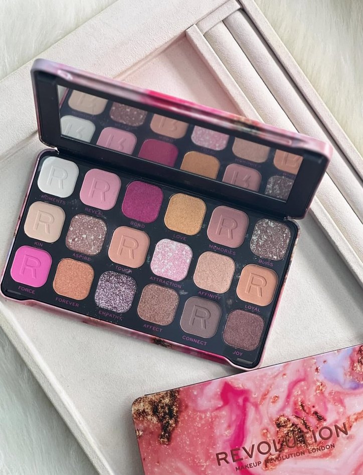 Işıltılı ve mat pembe tonlardan oluşan far paleti, yumuşak ve parlak göz makyajları için uygundur.
