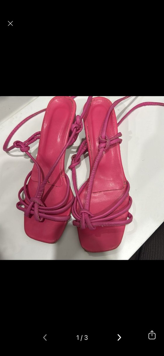 Pembe topuklu sandaletler, bağcıklı kayışları ve minimalist tasarımıyla romantik akşamlar için uygundur.