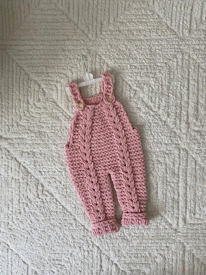 Minik ilmekler markalı, askılı ve bol kesim pembe kız tulumu. Normcore tarzda, pastel pembe renkte.