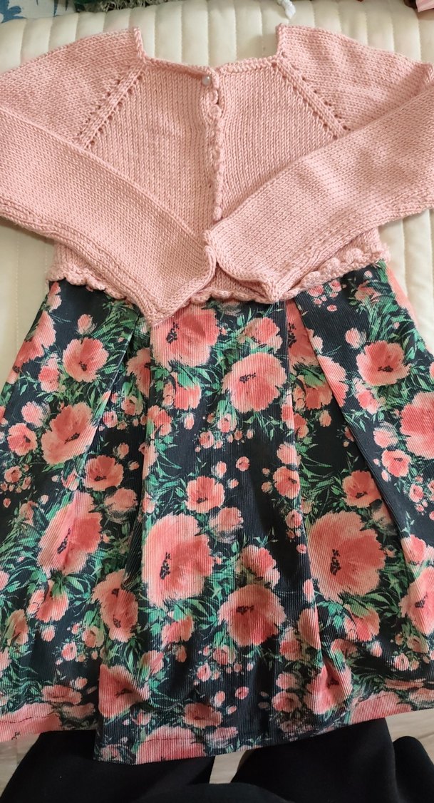 Pembe renkli, triko dokulu kadife elbise, el yapımı