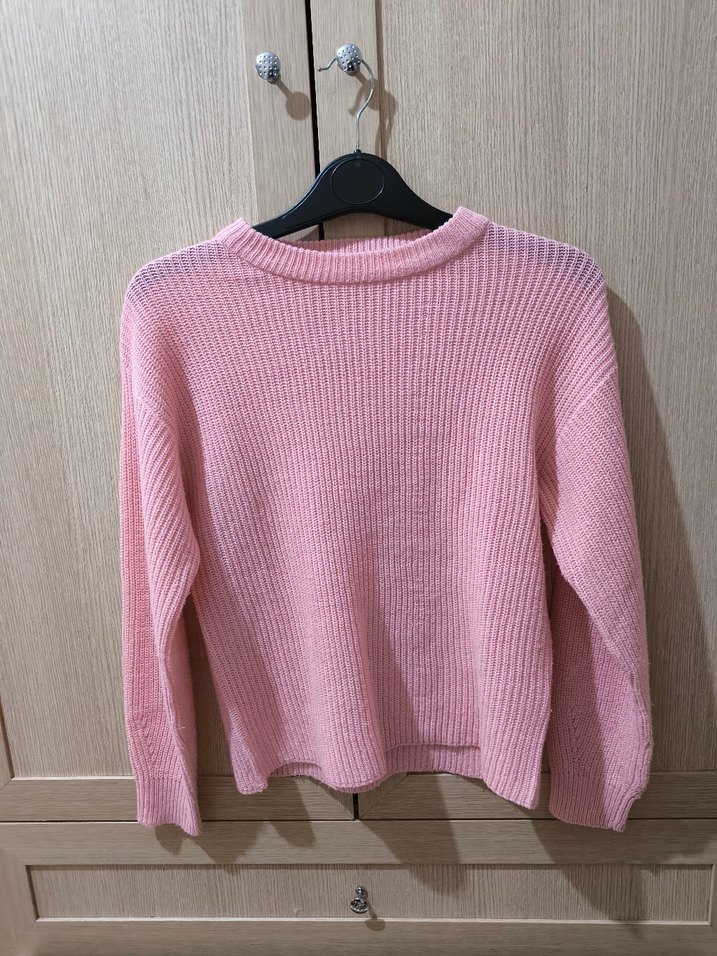 Pembe renkli, yuvarlak yaka ve uzun kollu triko kazak. Normal boy ve bol kesim ile rahat bir kullanım sunar. Yumuşak triko kumaşı ve pastel tonu günlük kullanıma uygundur.