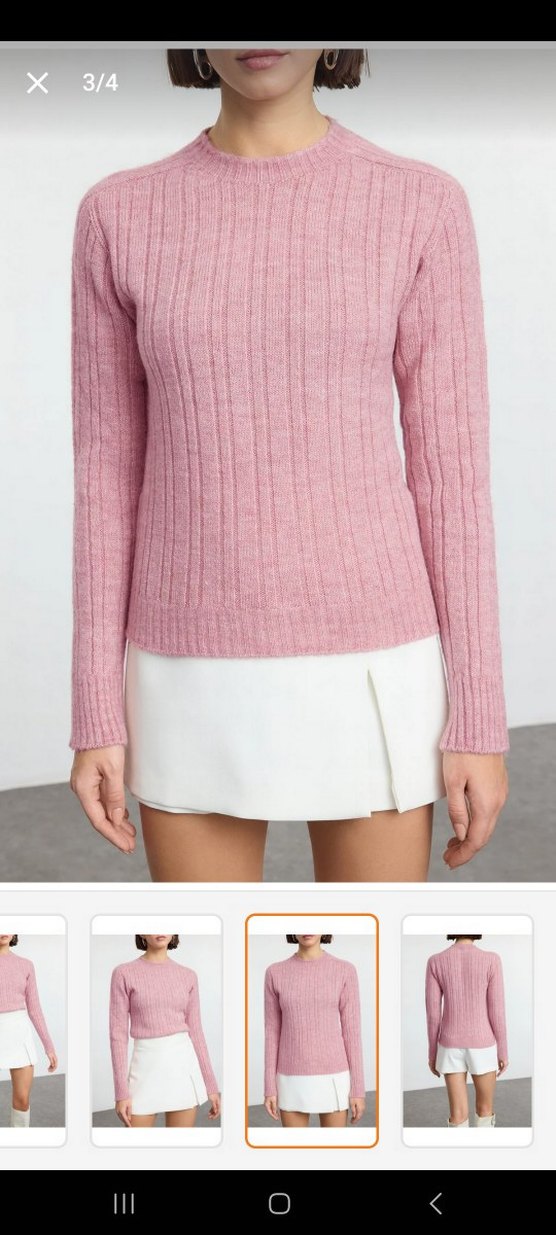Pastel pembe renkte, uzun kollu ve bisiklet yaka, vücuda oturan triko kazak. Günlük kullanıma uygun rahat ve şık bir parça.