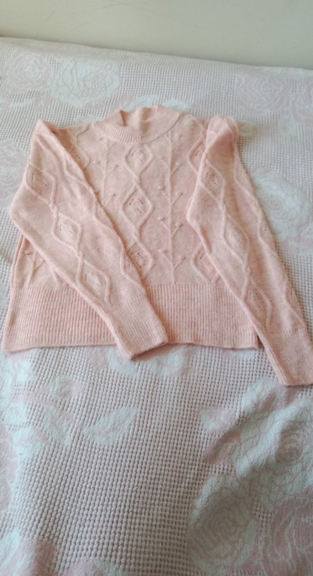 Pembe triko kazak, yuvarlak yaka ve uzun kolludur. Rahat kesimi ve dokulu deseniyle gündelik kullanıma uygundur. Pastel rengiyle yumuşak ve rahat bir görünüm sunar.