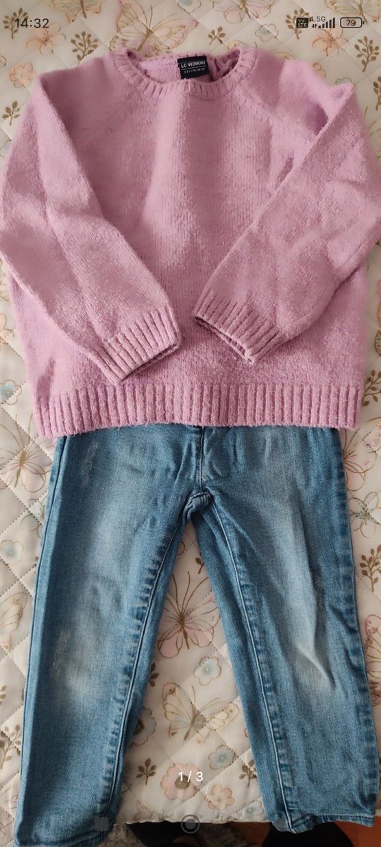 Pembe renkli, denim malzemeden örülmüş, rahat kesim kız kazak. Bisiklet yaka ve uzun kolludur, pastel tonlarda normcore tarzındadır.