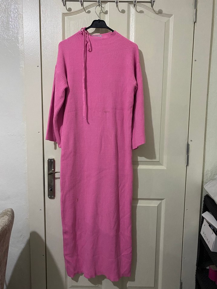 Pembe Triko Uzun Kollu Kadın Elbise
