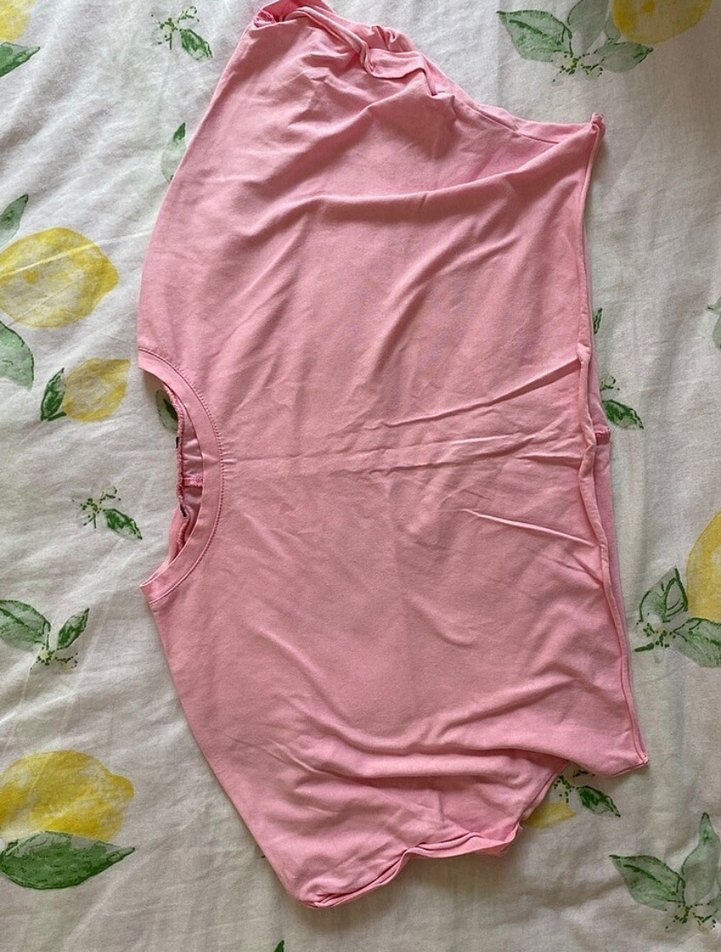 Pembe ve salaş kesimlidir. Tek renk,crop günlük sokak stili için uygundur.