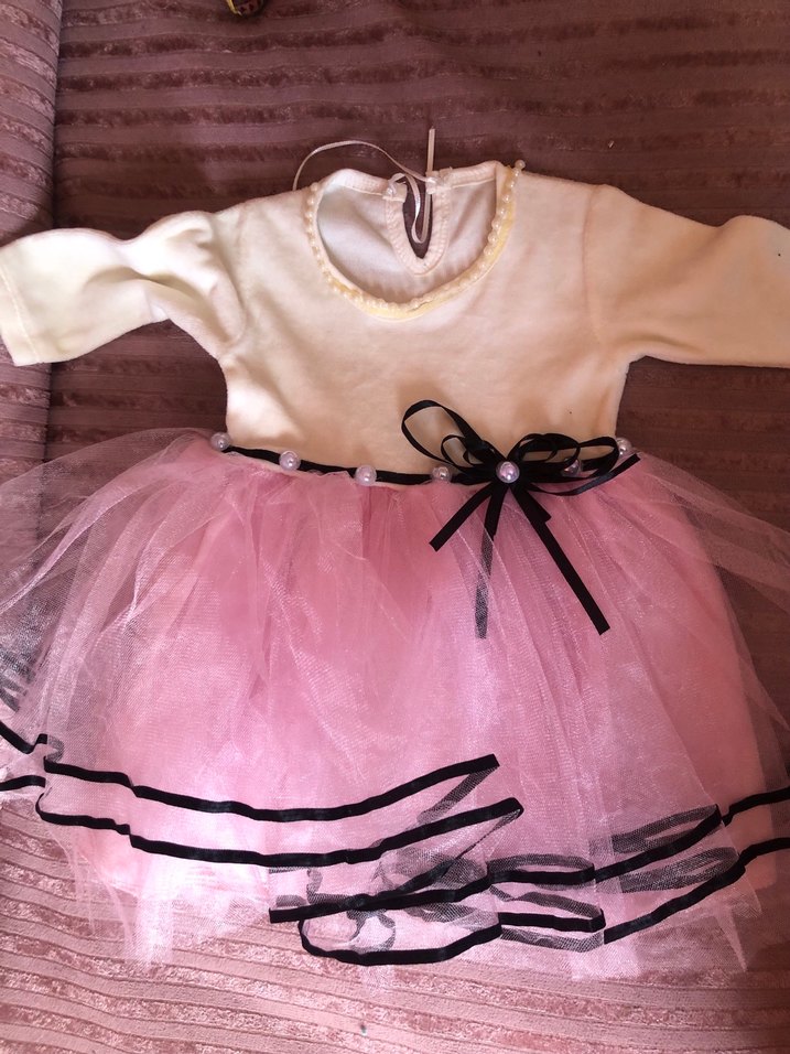 Pastel pembe tül etek ve siyah kurdele detaylı, beyaz uzun kollu, yakası incili kız çocuk elbisesi. 9,12 ay 1,2 yaş sorunsuz elbiseler ayrı ilan açılır fiyatlar farklı