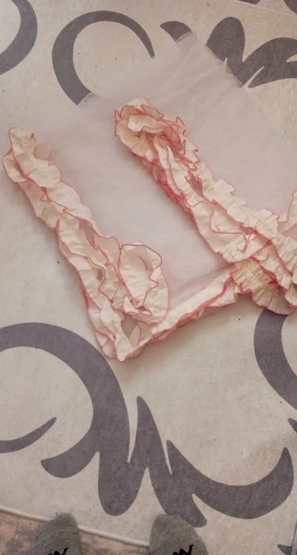 Pembe tüllü, fırfırlı kenarlara sahip bebek çı binlik. Yumuşak ve nefes alan kumaştan üretilmiştir.