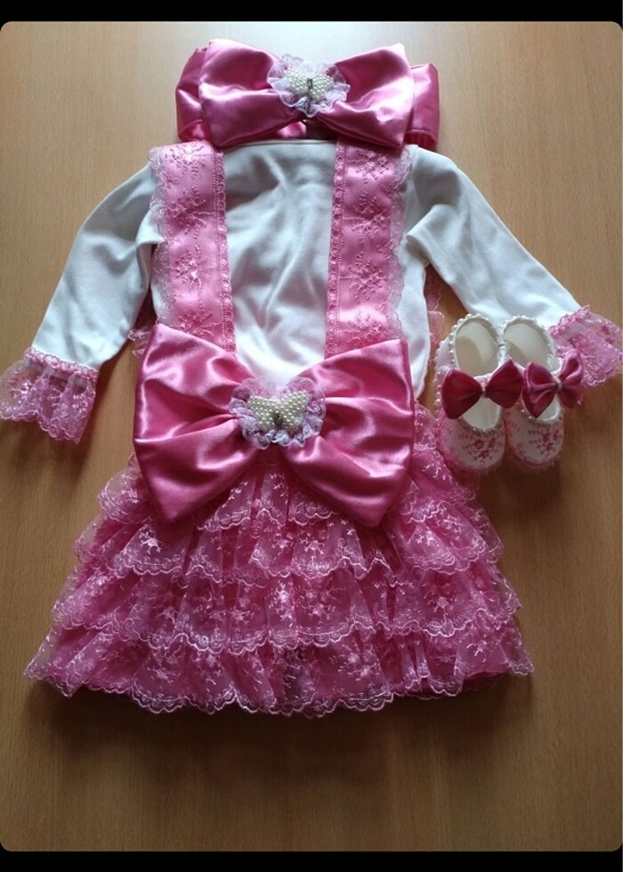 El dikimi pembe tül tulum Ayakkabı, saç bantı ve badisi de bulunmaktadır. 4 parça set