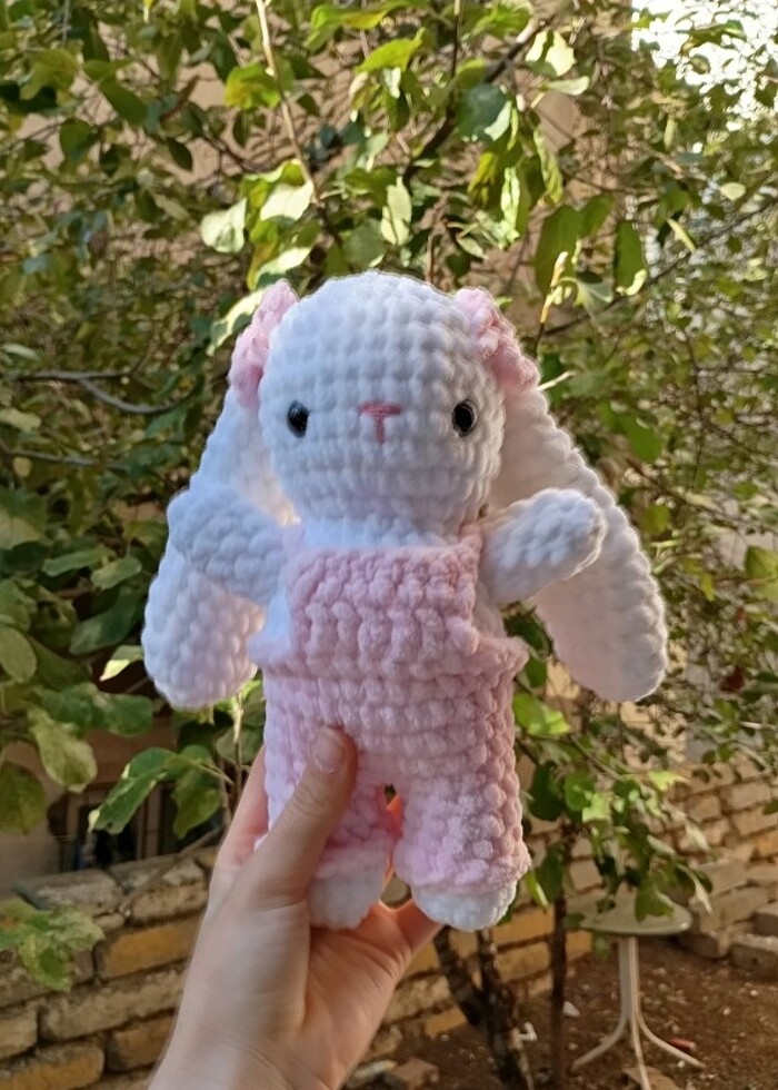 Pembe tulumlu ve tokalı tavşik amigurumi