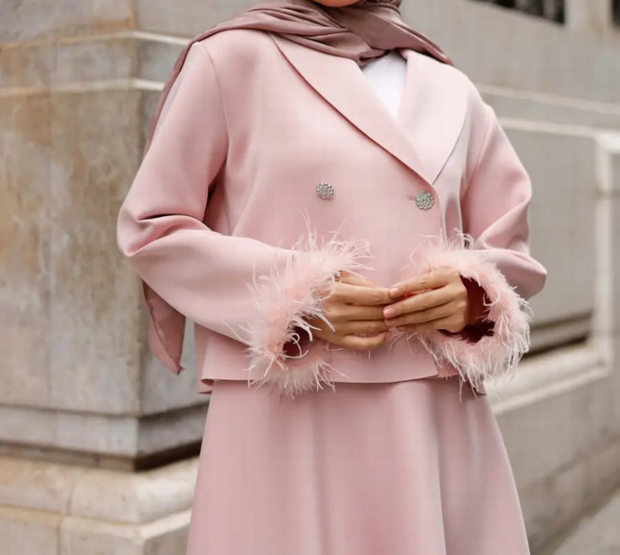 Pembe Tüylü Ceket Etek Takım