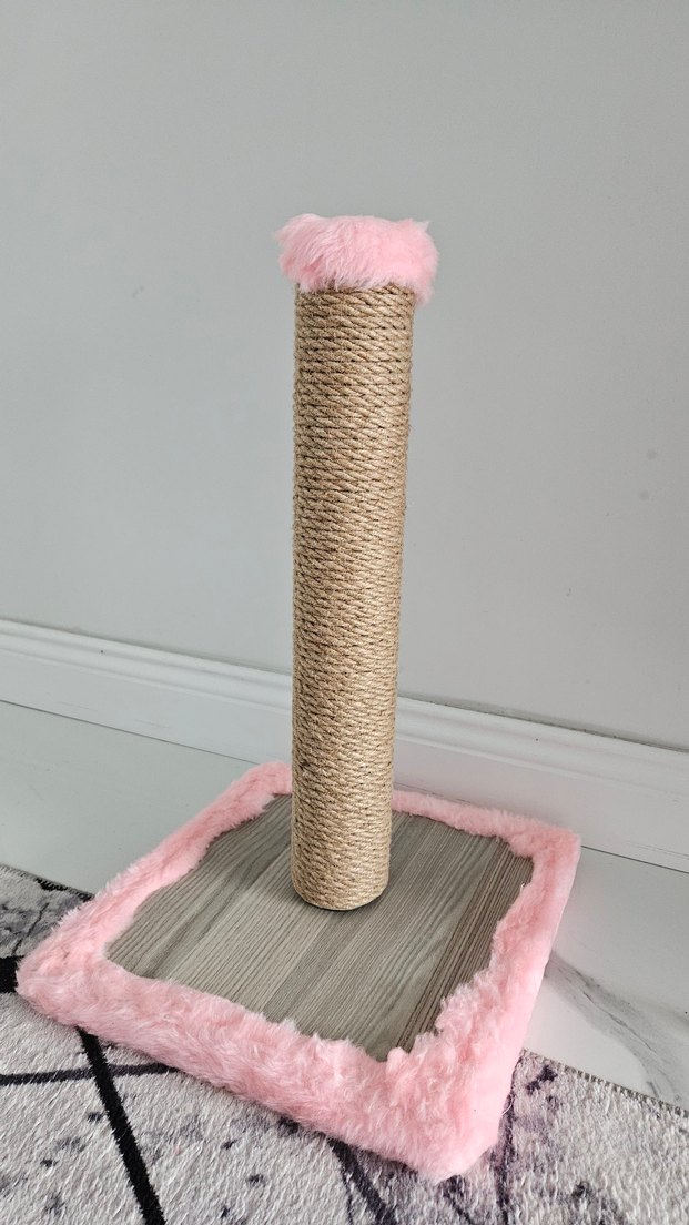 Hiç kullanılmadı. Dayanıklı tabanı ve doğal ip kaplı direği pembe tüylü pastel pembe detaylarla çevrilidir.