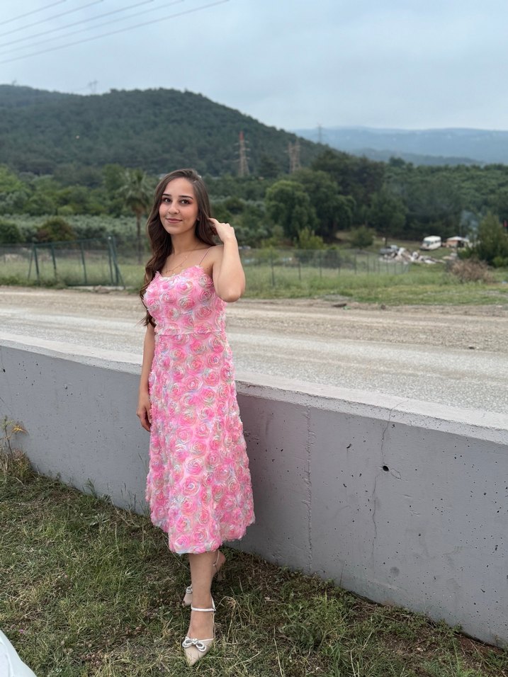 Pembe üç boyutlu güllü elbise bir kez düğünde giyildi . Çok şıktır . Söz , doğumgünü, bride to be gibi yerlerde tercih edilebilir