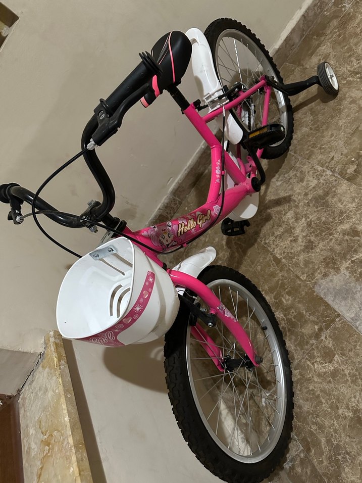 Renkli pembe üç tekerlekli bisiklet, sağlam gövde, destek tekerlekleri ve ön sepet ile küçük eşyalar taşımaya uygun. Ürün toyzshop tan alındı hiç kullanılmadı alındığı gibi hiçbir kusuru deformesi yoktur