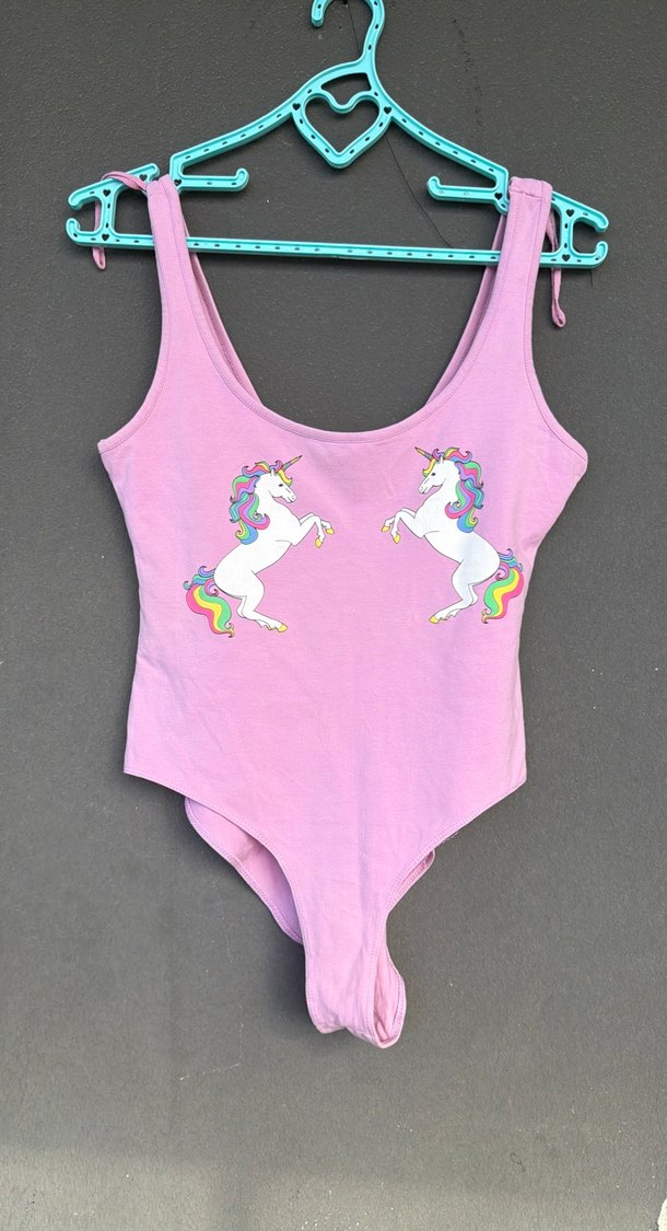 Pembe Unicorn Baskılı kadin body