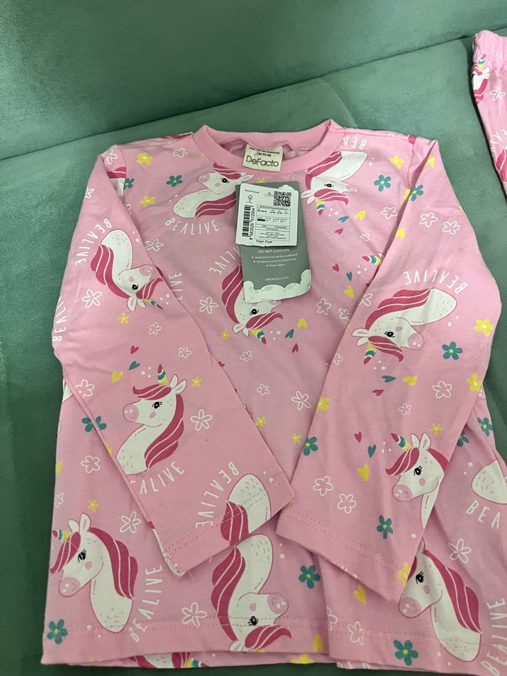 Pembe renkli, uzun kollu kız çocuk tişörtü, unicorn baskıları ve düğme detaylarıyla bol kesim ve yumuşak kumaştan üretilmiştir.