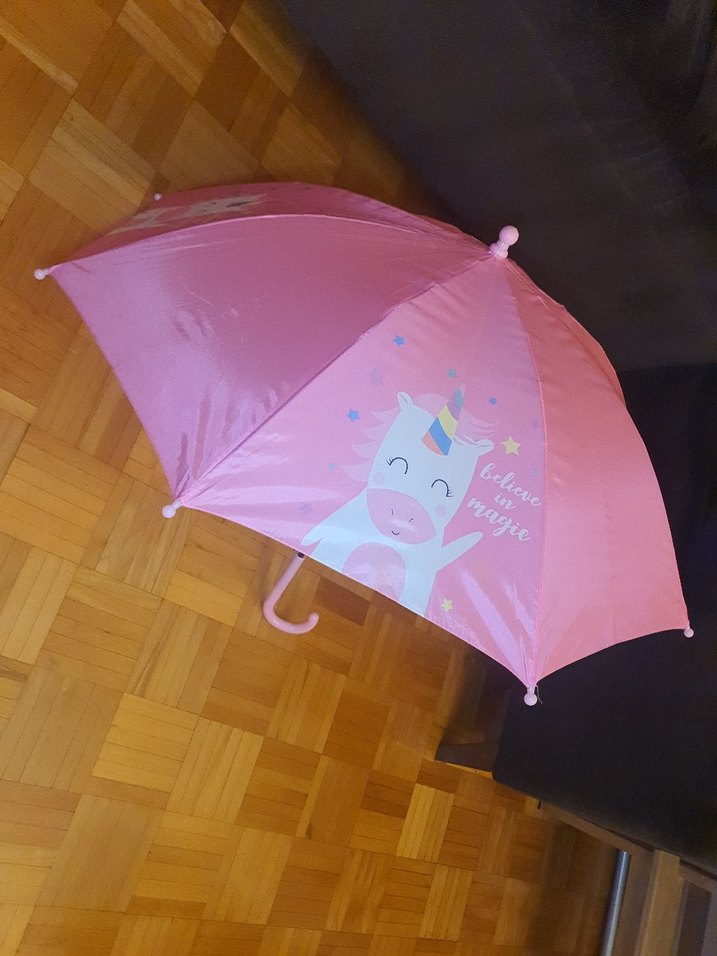 Pembe unicorn baskılı, kız çocuk şemsiyesi, az kullanıldı, eğlenceli bir tarz sunar. ☂️