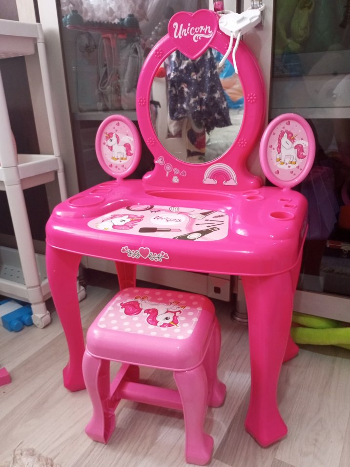 Pembe Unicorn Temalı Çocuk Makyaj Masası