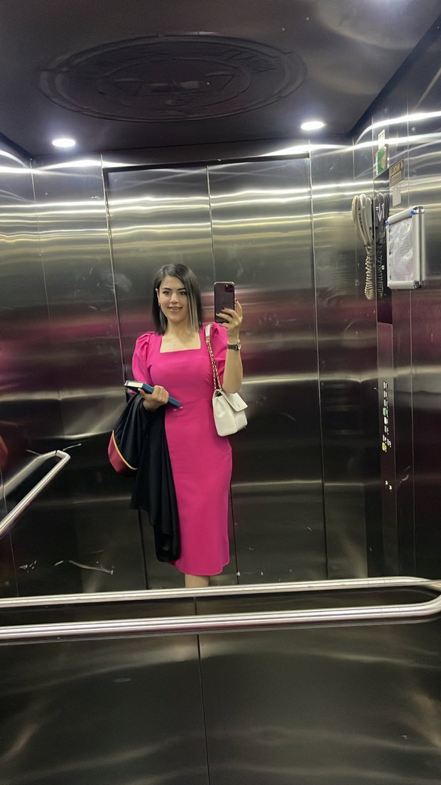 Pembe uzun, regular fit elbise, askılı kolsuz ve parlak sentetik kumaştan baskılı desenlidir. Ofis ve günlük kullanım için şık bir tercih. İki kere giydim. Kusuru yok. Marka temsili. Butik ürünü.