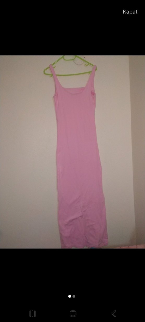 Pembe Uzun Askılı Kadın Elbise