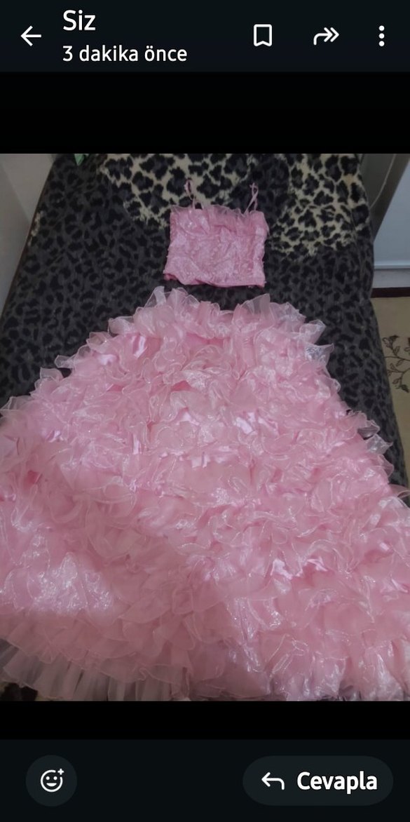 Pastel pembe renkli, uzun askılı ve nakış işlemeli kız elbisesi. Fıtilli ve fırfır detaylı, parti için uygundur.