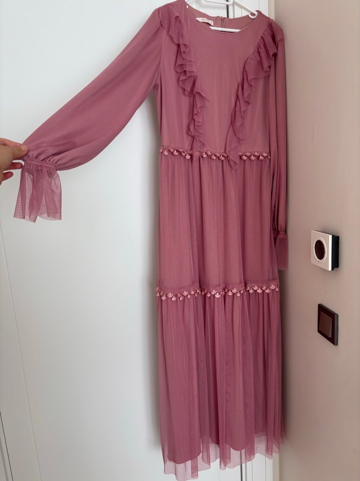 Pembe Uzun Bohem Elbise