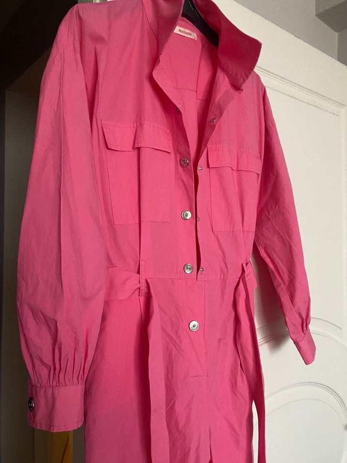 Pembe Uzun Düğmeli Kadın tulum