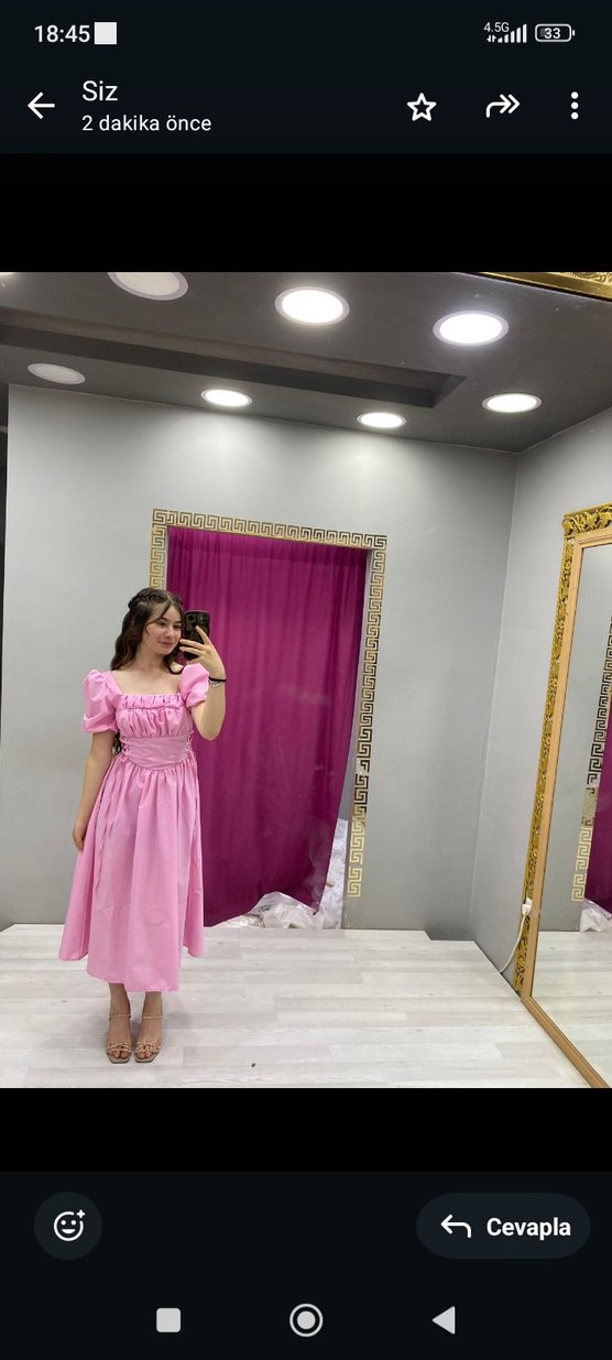 Pembe Uzun Elbise, Fırfırlı, karpuz kol, prenses model