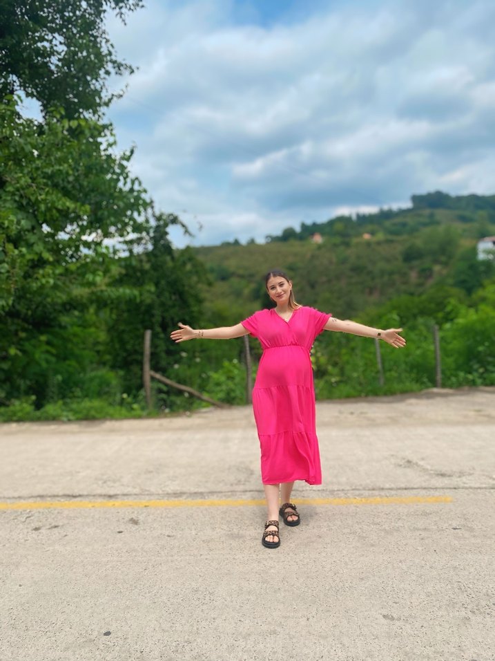 Pembe Uzun Hamile Elbisesi