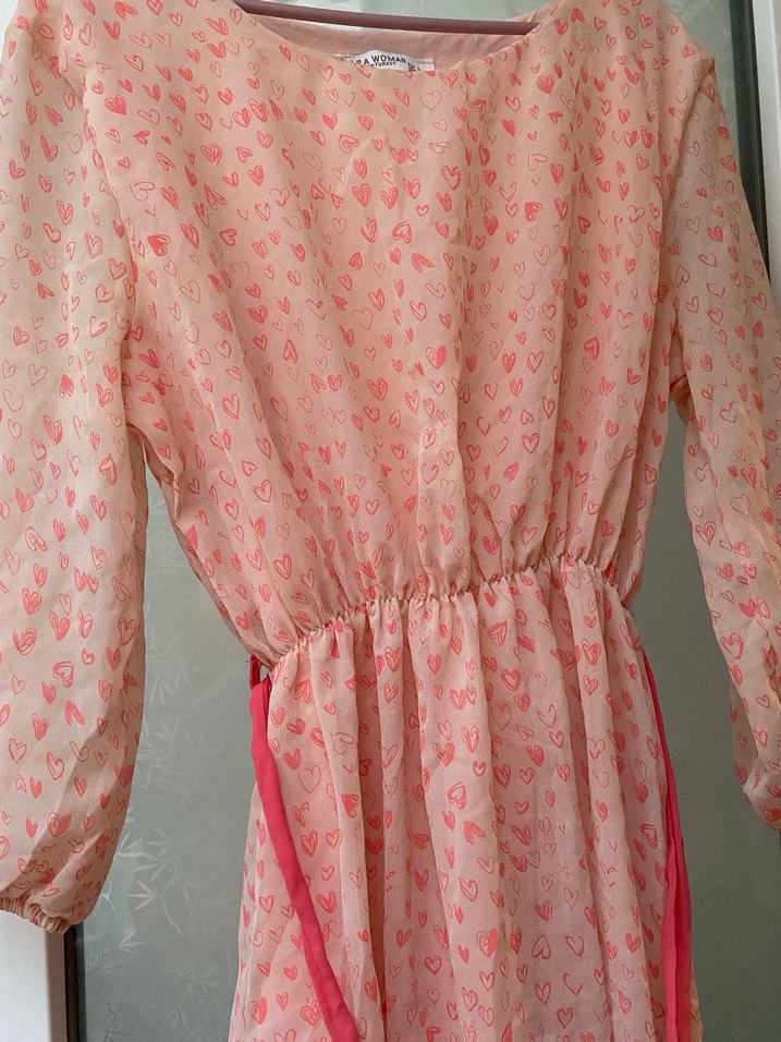 Pembe pastel kalp desenli, uzun ve bol kesim hamile tunik. Yuvarlak yaka, fırfırlı ve askılı kol detaylarıyla bohem ve retro tarzı yansıtıyor. Sol koltuk altında dikişi açılmış,fiyata yansıtıldı