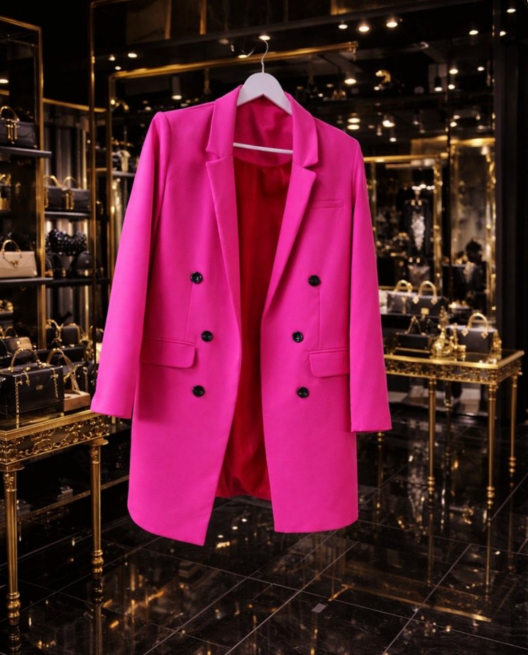Pembe renkli, uzun kesim, düğmeli kadın blazer ceketi, ipeksi kumaştan, uzun kollu ve regular fit, ofis kullanımı için uygundur. GÜCÜN VE ZARAFETİN BULUŞMASI Modern şıklığın en iddialı hali! Canlı fuşya rengiyle tüm bakışları üzerine çeken bu çift düğmeli blazer, lüks mağaza stilini gardırobunuza taşıyor. Keskin hatları, kusursuz kalıbı ve göz alıcı rengiyle hem gündüz kombinlerinde hem de gece şıklığında fark yaratır. ✨ Neden vazgeçilmez? Premium kumaş dokusu Zamansız ve güçlü siluet Cesur, feminen ve sofistike duruş Jean, elbise ya da etekle kolay kombin Şıklığını tesadüfe bırakmayan kadınlar için tasarlandı. Bir adım öne çıkmak, güçlü görünmek ve stilini konuşturmak istiyorsan bu blazer tam senlik! Stoklar sınırlı – şimdi sahip ol! m vevl beden uygundur