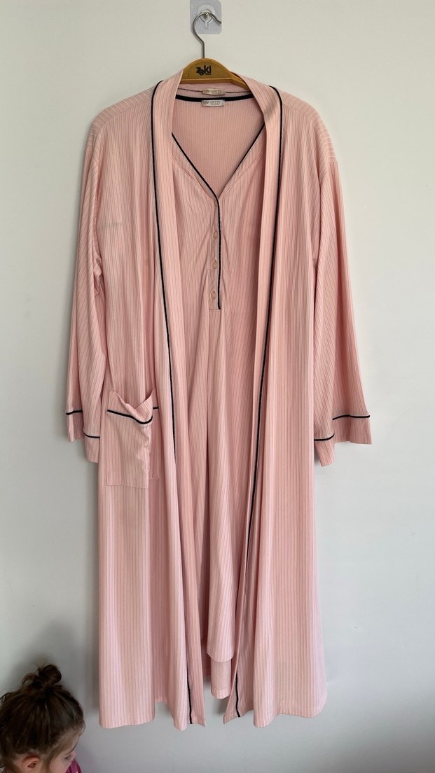 Pembe Uzun Kadın Sabahlık - Rahat Kesim