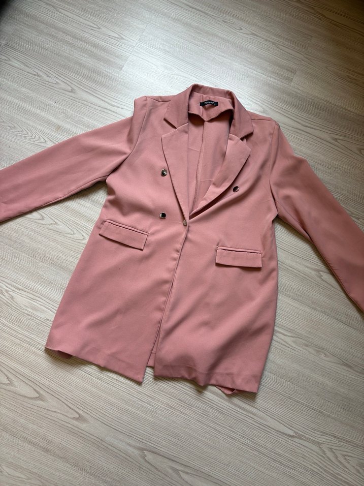 Pembe Uzun Kesim Düğmeli Kadın Blazer