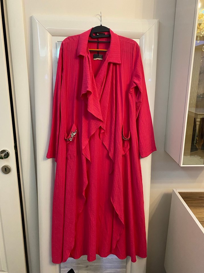 Pembe Uzun Keten Salaş Kadın Kaban