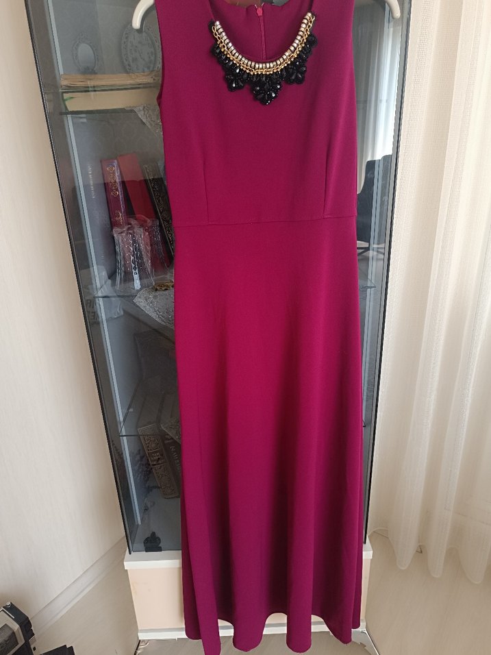 Uzun, kolsuz ve V yakalı bu elbise, vücuda oturan kesimi ve drapeli detaylarıyla dikkat çeker. Parlak pembe kumaşıyla çağdaş ve minimalist bir tarza sahiptir.