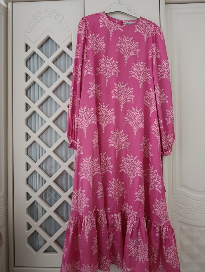 Pembe Uzun Kollu Bohem Renkli Elbise