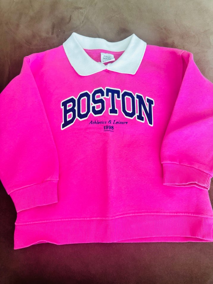 Pembe Uzun Kollu Boston Baskılı Sweatshirt