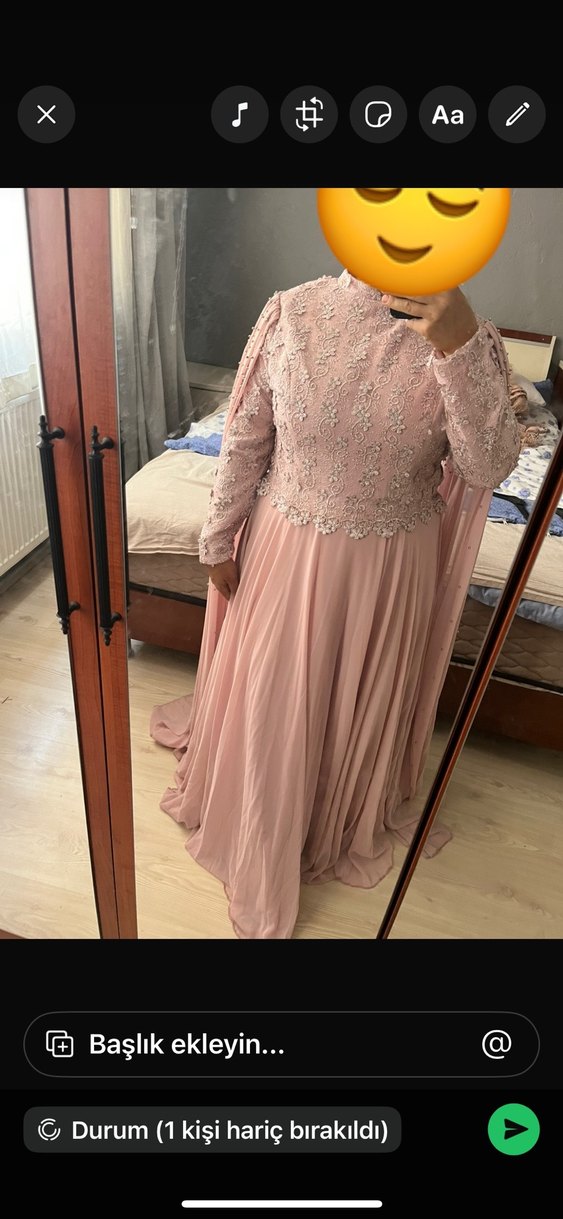 Pembe Uzun Kollu Dantel Detaylı Abiye Elbise