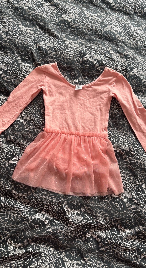 Pembe renkte, uzun kollu ve V yakalı bu dar kesim elbise, dantel ve hafif ışıltılı etek kısmıyla şık ve rahat bir tasarıma sahiptir.