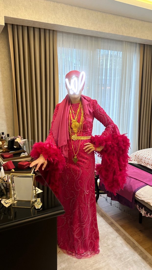 Pembe, uzun kollu, yüksek yakalı, desenli ve drapeli kadın bindallısı, şık ve fit kesimlidir. Avant-garde parti stiline uygundur. Sıfır gibi temiz hatasız 36-38-40 a uyumlu İstenirse detay foto atılır