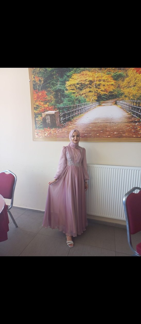 Pembe Uzun Kollu Drapeli Abiye Elbise