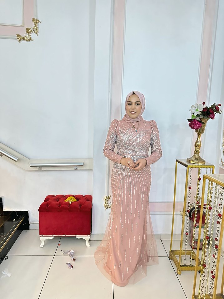 Pembe Uzun Kollu Drapeli Abiye Elbise fiyatı 40 42 beden