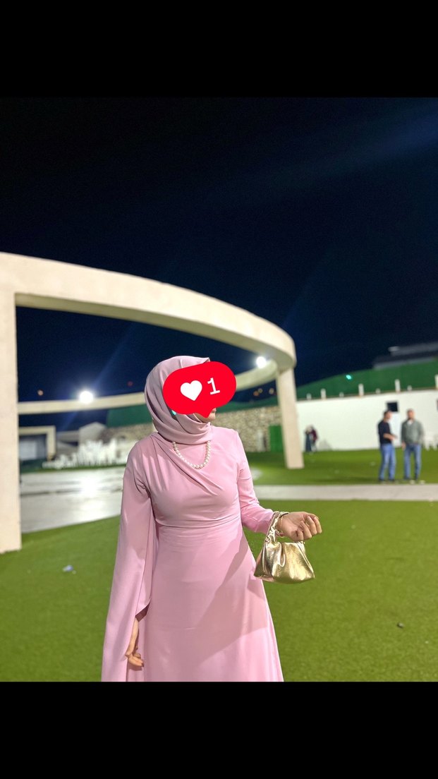 Pembe Uzun Kollu Drapeli Tesettür Elbise