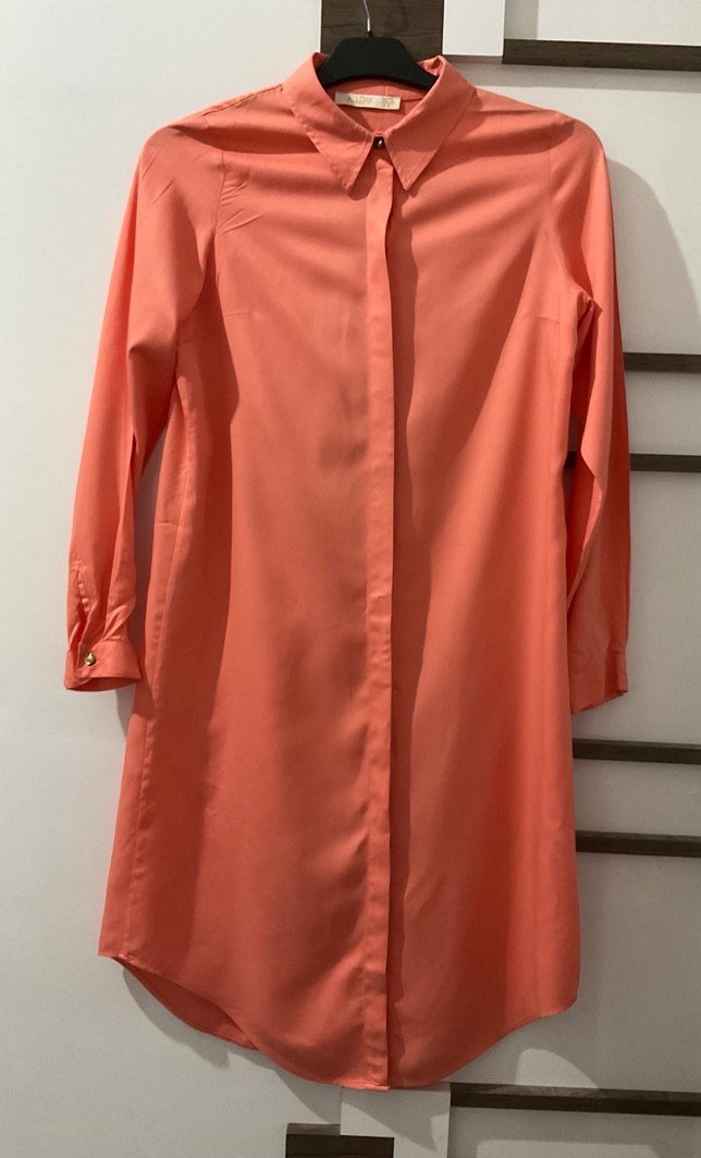 Pembe Uzun Kollu Düğmeli Kadın Tunik hiç giyilmedi