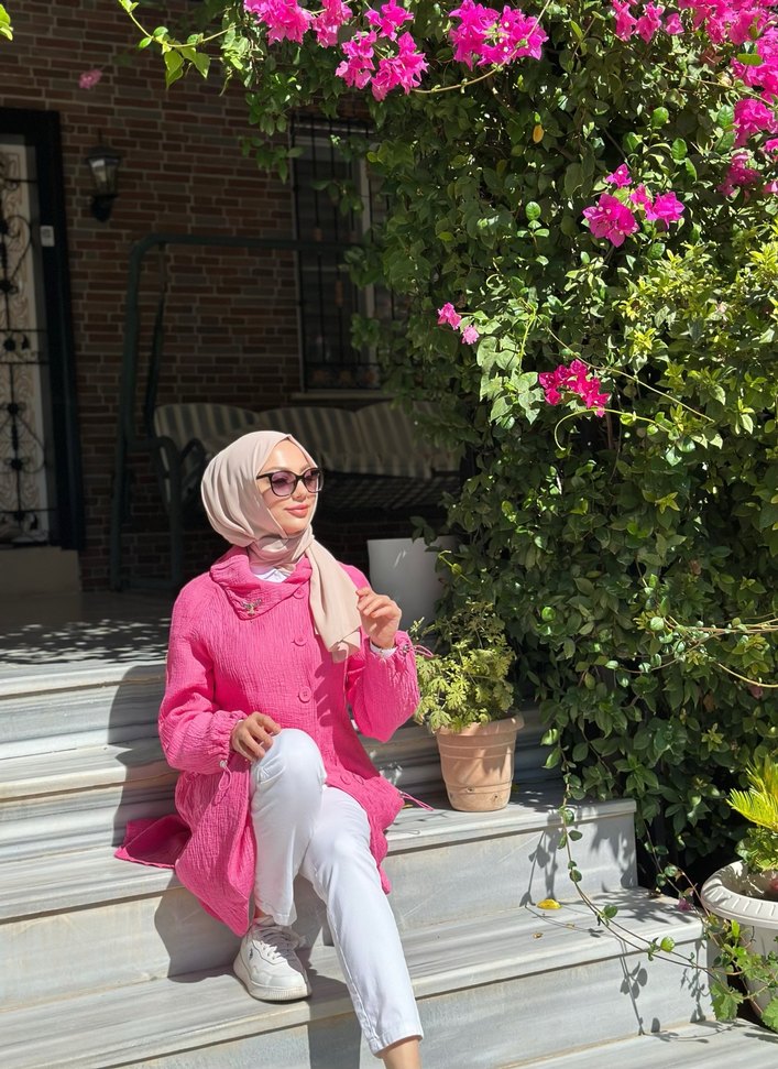 Pembe Uzun Kollu Etnik Desenli Kadın Tunik