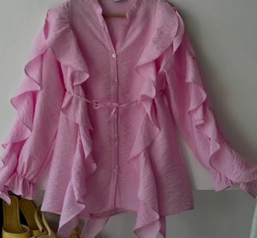Çok tatlı bir rengi var satışa koymamın sebebi bana dar oldu bir beden büyüğünü sipariş ettim etiketli sıfır. Kollarında ve önündeki fırfır detayı gömleği bambaşka şekile büründürüyor.
