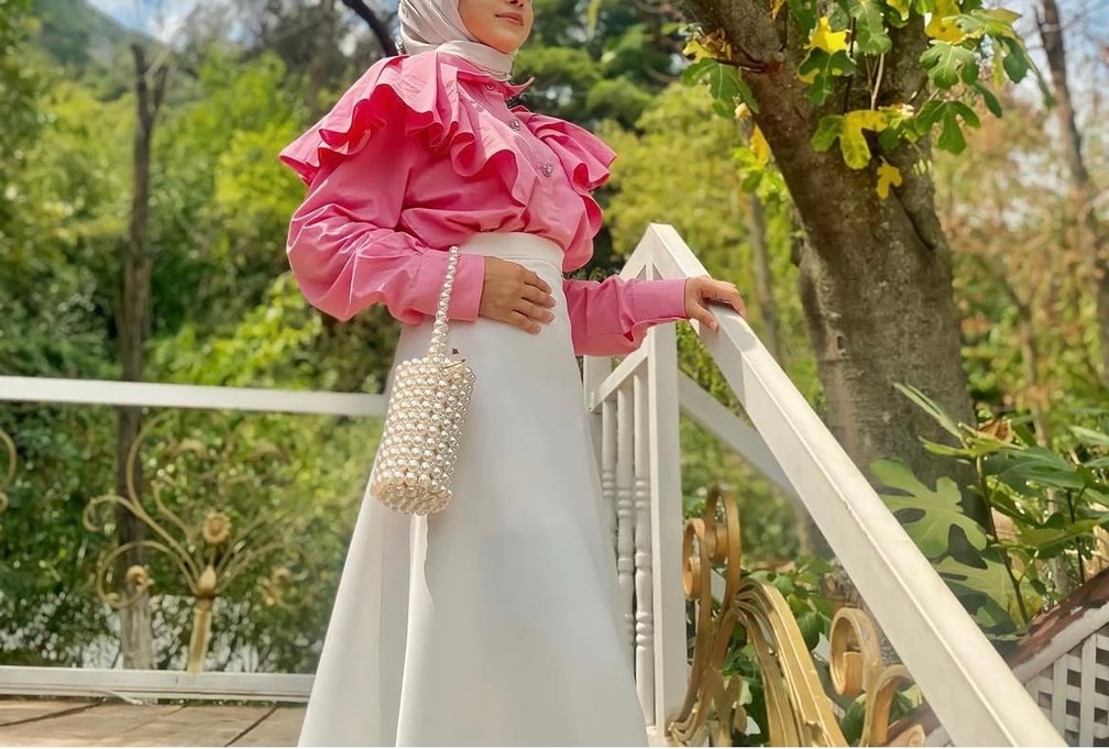 Fırfırlı detaylara ve yüksek yakaya sahip, pembe pastel renkli, dar kesim kadın bluz. Sentetik kumaştan, nakışlı ve ince askılı kollu, günlük şıklık için uygun. HİÇ DEFOSU YOK 1 kez giyildi tertemiz