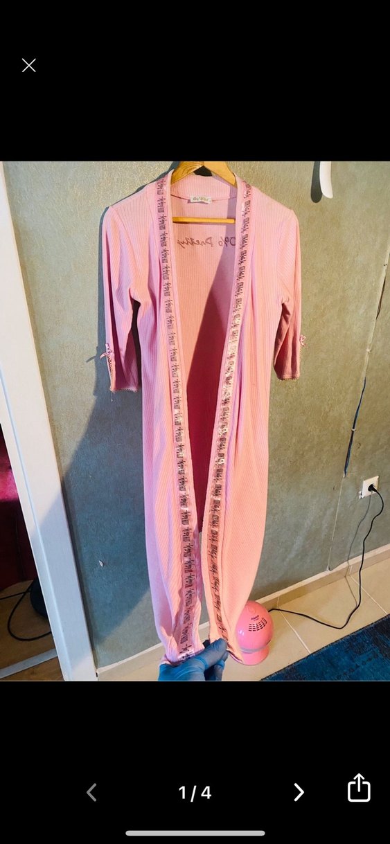 Pembe Uzun Kollu İnce Kesim Kadın Sabahlık