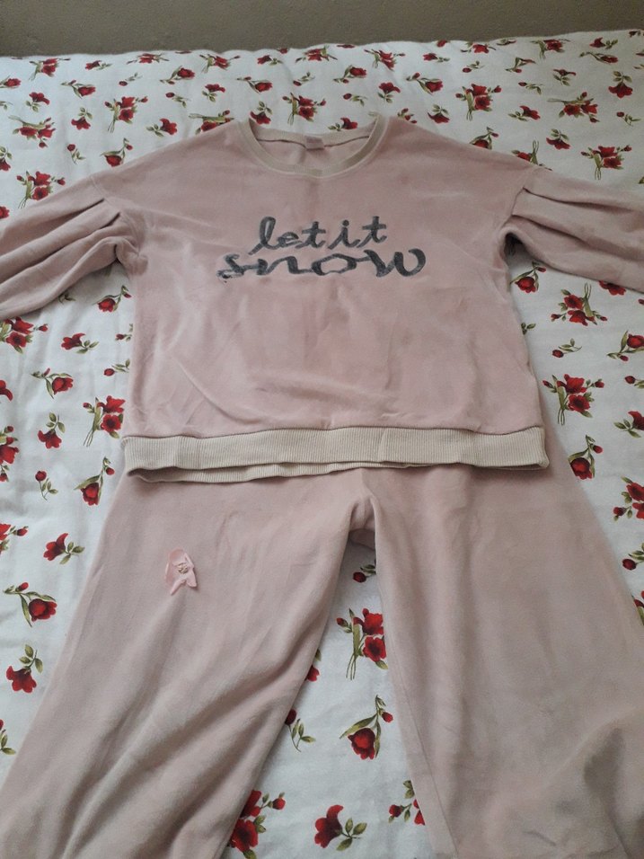 Pembe renkli, uzun kollu ve bol kesim mini çocuk pijama takımı. "let it snow" yazılı baskısı ve yumuşak kadife kumaşıyla rahatlık sunar. ❄️