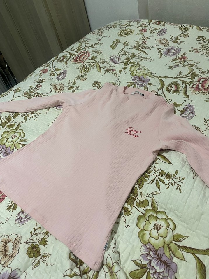 Pembe renkli, uzun kollu, Yumuşak sentetik kumaştan yapılmış, pileli dokusu ve baskılı deseniyle dikkat çeker.